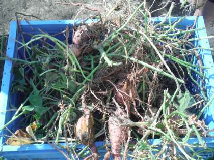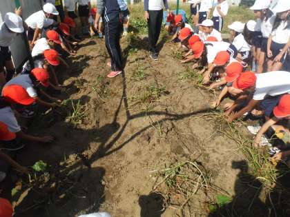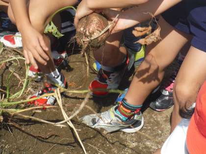 愛育会の皆さんにご協力いただき、お芋ほりを行いました。土に中から虫が出てきた、「女子的には無理!」と言いながらも、楽しそうにお芋ほりをしていました。