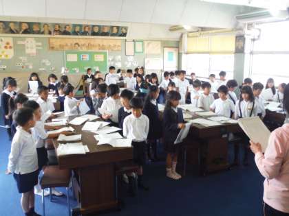 台詞と歌の練習をしました。ほとんど子どもたちが台詞を覚えていて、その表現もとても上手にできていました。歌声もとても元気でした。