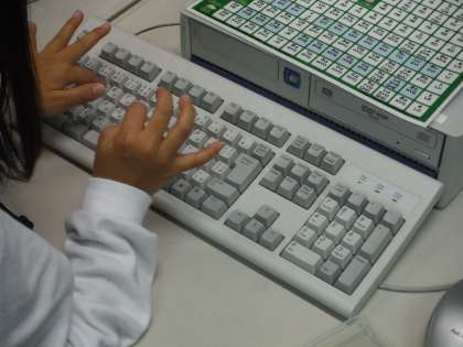 パソコンで五十音を打つ練習をしました。みんなとてもスピーディに打てていて、驚きました。