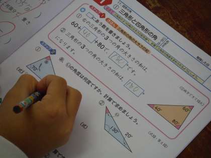 昨日の続きで、いろいろな三角形の3つの角の大きさの和の学習をしました。