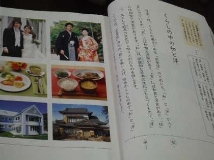「くらしの中の和と洋」について段落分けをしたあと、そのそれぞれの段落が(序論)(本論)(結論)のどれにあたるかを考えました。