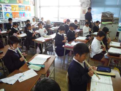 タンギングを使って「聖者の行進」、サミングを使って「ハッピーバースディ—」を演奏しました。とても良い音色が聴こえていました。