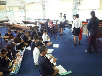 楽器を分担して「キリマンジャロ」の演奏をしました。最後に素晴らしい演奏を聴くことができました。