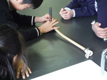 理科室を使う時の注意や器具の使い方などを学習しました。そのあと、瓶の中の空気を温めると蓋はどうなるのかを実験しました。