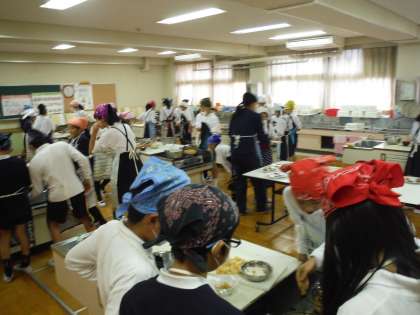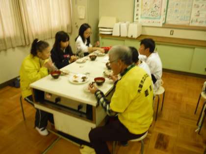 先日、脱穀・精米をしたお米を使っておにぎりとお味噌汁を作りました。自分たちで田植えと稲刈りと精米までしたお米だったので、とても味わい深くいただくことができました。今日のパーティーには、お世話になった愛育会の皆さんをご招待して、一緒に食べることができました。お味はと尋ねると「美味しい」という声ばかりでした。