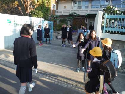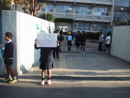 今朝のあいさつ運動は、計画委員とあいさつ&ハイタッチをするでした。