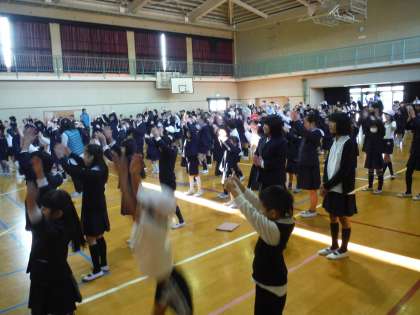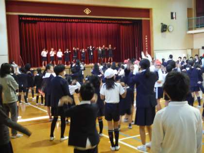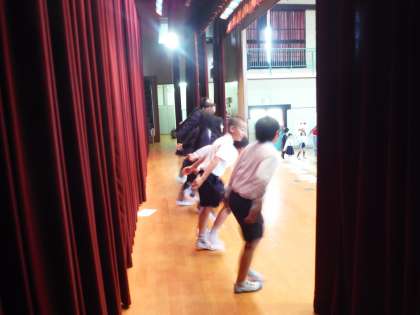 舞台で計画委員がする動作をみんなで一緒にするというゲームをしました。