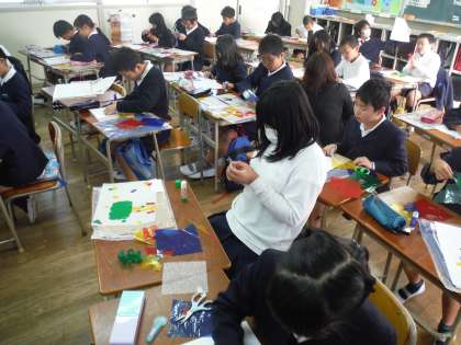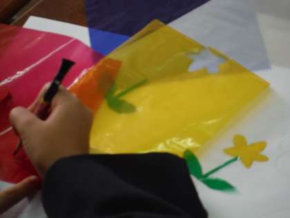 「光の差し込む絵」を制作していました。できあがりが楽しむです。