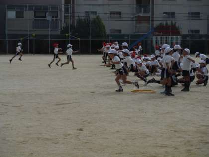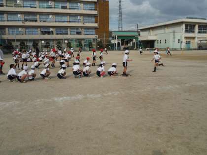 運動場はとても寒かったのですが、子どもたちは元気いっぱい走っていました。