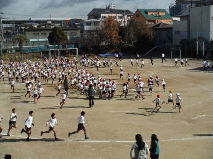 今日から20分休憩を利用して、かけあし運動が始まりました。外はとても寒かったのですが、子どもたちが元気に自分のペースで走っていました。