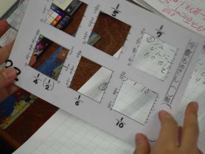 「10分の2と10分の3を合わせるといくらになるか」を学習しました。分数計算を簡単にする道具を使うと、とても分かりやすくなりました。