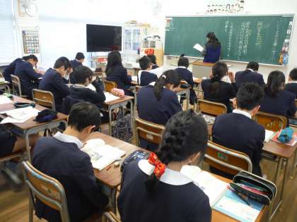 「いにしえの言葉に学ぶ」の学習をしました。“しょしんわするべからず””なせばなるなさねばならぬなにごとも…”など、何を伝えようとしているのかを考えました。
