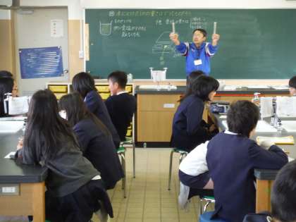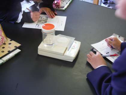 「水に溶けたものを重さはどうなるのか」の学習で、塩を水に溶かせて重さを計る実験をしました。