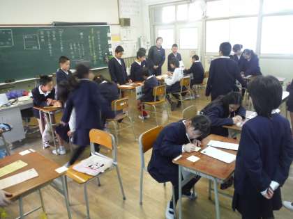 「委員会活動を紹介しよう」の学習で、それぞれのお店にリーフレットを置き、お客さんとお店の人との役割を決めて、委員会活動を発表しました。