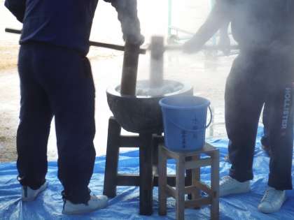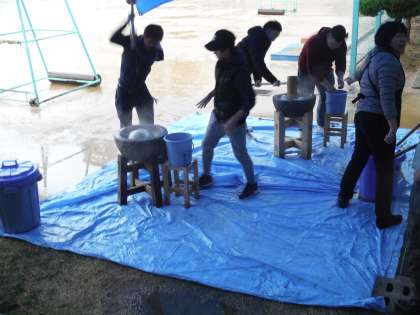 あいにくの雨にもかかわらず、子どもたちや保護者の皆さん、地域の皆さんがたくさん集まってくださいました。つきては青年団の皆さんが、つきあがったお餅にきな粉をつけたりおしるこにしたりするのを、地域の皆さんやPTAの皆さんが手際よく作業をしておられました。愛育会の皆さんも安全確保の見守りなどをしていただきました。また、バルーンアートも大人気でした。子どもたちは、つきたてのお餅を美味しそうに頬張りながら、楽しい時間を過ごしていました。運営に関わられた皆さんに、心より感謝申しあげます。ありがとうございました。