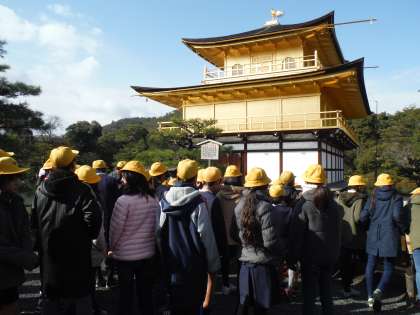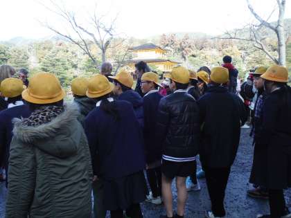 とても寒いなか、卒業遠足に行ってきました。金閣寺の見学と太秦映画村を班で行動しました。時折、雪が舞うなか、子どもたちはクラスで行く最後の遠足ということもあって、行きのバスのなかからテンションがマックス状態。今日一日、よい思い出として心に残せたように思います。保護者のみなさん、早朝よりお弁当作りありがとうございました。