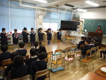 明日の学習参観で、「1年間でできるようになったこと」発表します。子どもたちは、少し緊張した表情で、練習をしていました。