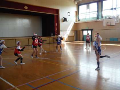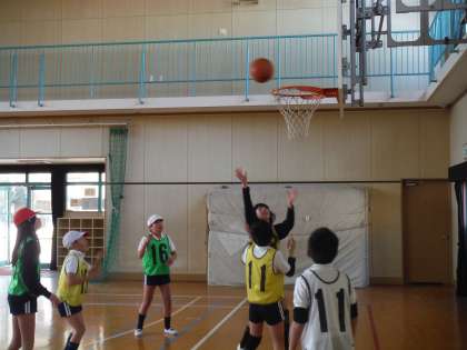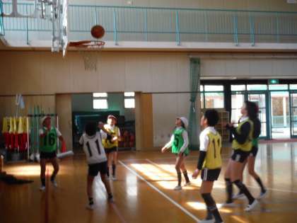 バスケットボールを行いました。一つのボールをみんなが一生懸命追っかけていました。