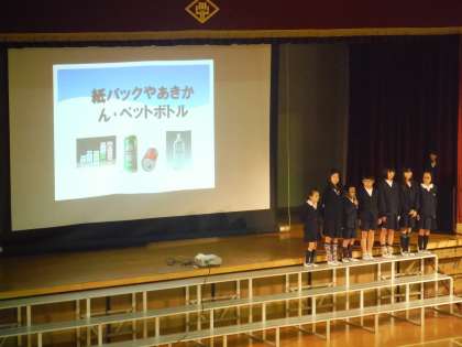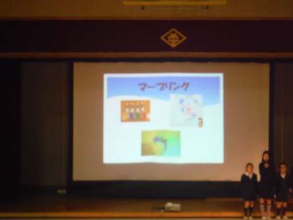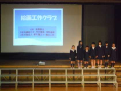 クラブ発表を行いました。図画工作、囲碁将棋、科学の三つが活動を発表しました。