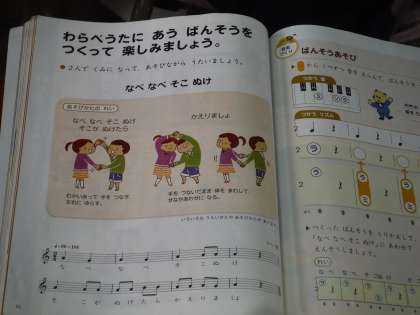 わらべ歌にあう伴奏を考え、それを実際に弾いてみました。