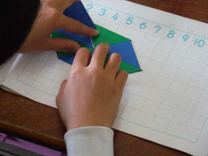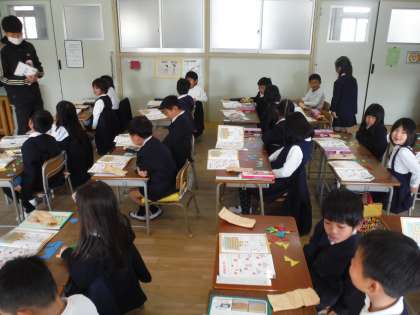 教科書に示して離る三角形の数枚使って、ダイヤモンド等を作りました。頭を捻って頑張って作っていました。