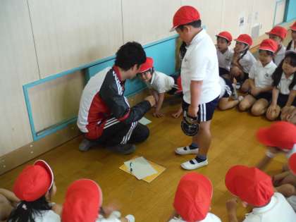 反復横とび、握力を計測しました。反復横とびが少し難しかったようです。