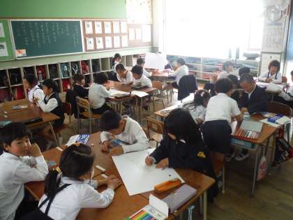 1年生と校内を回る校内探検に向けて、ポスター作りをしました。