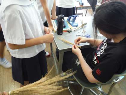 わらを使って、筆を作りました。次回は、この筆を使って描いてみるようです。