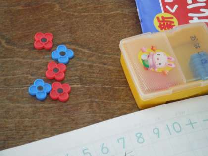 「5」はおはじきを使って表すと、いくといくとになるかを学習しました。