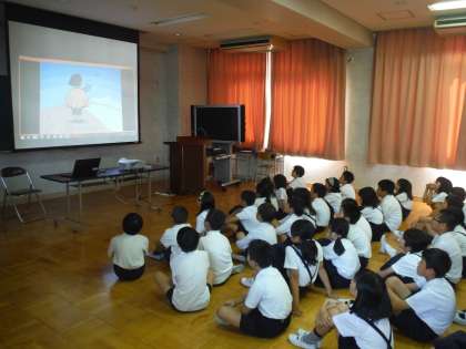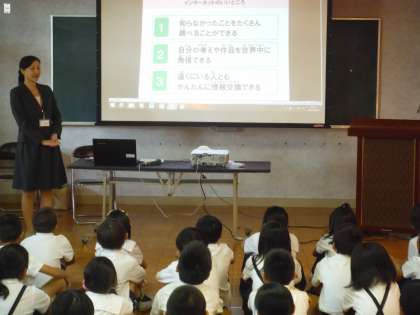 授業風景です。5・6年生では、携帯会社によるスマホ・携帯安全教室を開いていただきました。