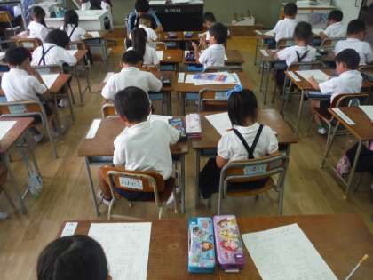 たし算の確認のテストを行いました。