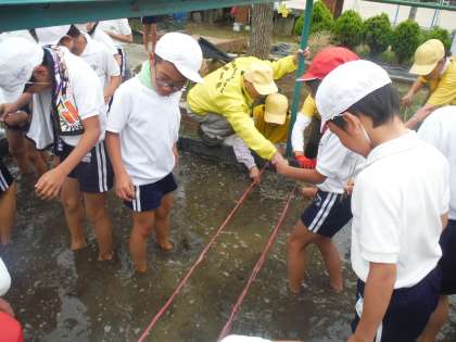 昨日、愛育会の皆さんのご協力により、なかなか体験できない田植えを行いました。