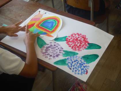 カタツムリとアジサイの絵を描き、あわせてみました。