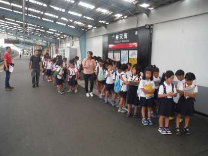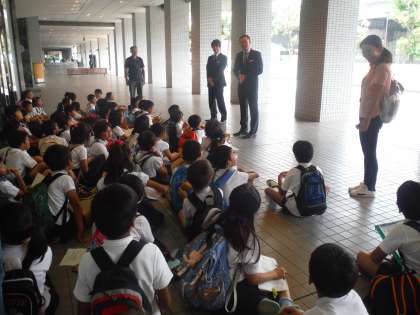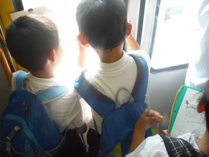 ベイタワーホテル51階のレストランから大阪を一望する社会見学に行きました。子どもたちは、そこから見える建物や景色をメモしながら、「すごくきれい」「USJや阿倍野ハルカスが見える」などの感想を友だちと話していました。