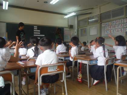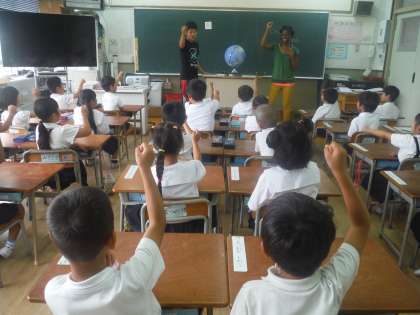 cC−NETの先生が1年生の教室に来てくださり、簡単なゲームをしました。子どもたちは、とても楽しそうにゲームをしていました。