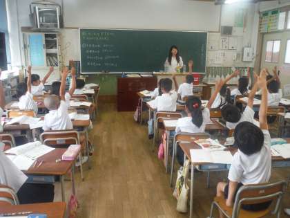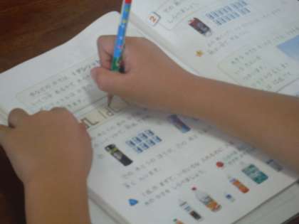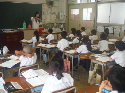 昨日の続きで、「リットル」「デシリットル」を学習しました。容器に入った色のついた水のかさは、どの容器の水が一番多いかを予想しました。
