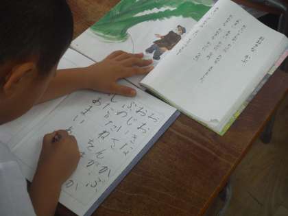 おおきな かぶの本文をノートに書き写しました。「」、。の位置を確認しながら一文一文丁寧に書きました。