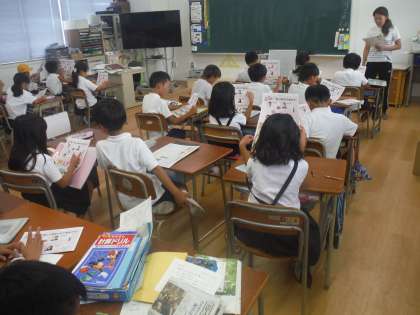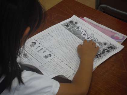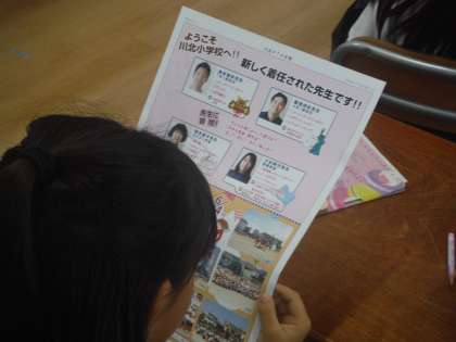 学校からのたくさんの配布物がありました。その中でも、子どもたちは、学校新聞の写真から「これ、○○さんや」「○○先生がいてる」といった会話が弾んでいました。後姿やごく小さな写真でもしっかり見つけていました。