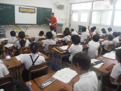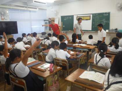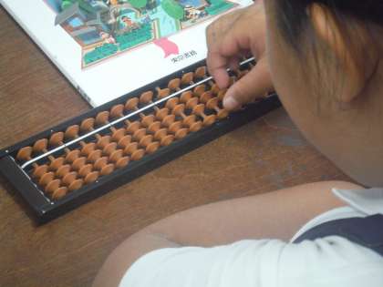 昨日と違うクラスでのそろばん学習の様子です。たし算をおいてみました。