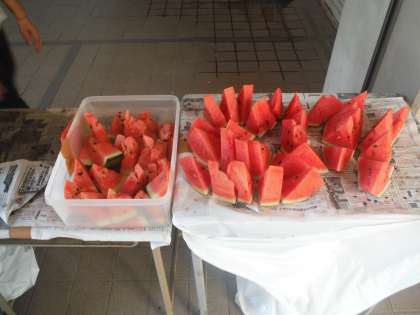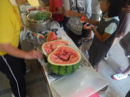 高学年の子どもたちも、「美味しい、美味しい」と言いながら、口いっぱいにスイカを頬張っていました。