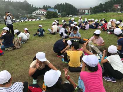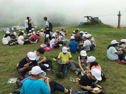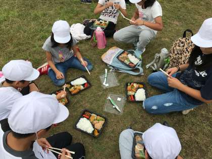 昼食風景です。事前に子どもたちが選んだ、ボリューム弁当とおにぎり弁当です。