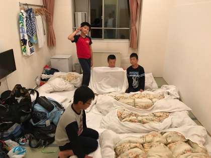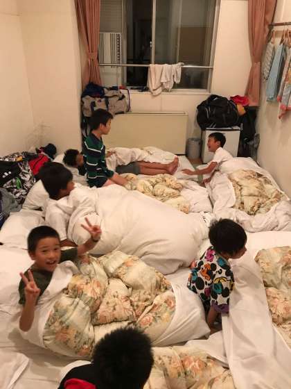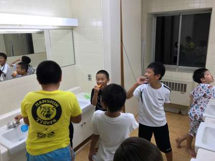 歯磨きをらしたり、寝具を整えたり、と就寝前の様子です。