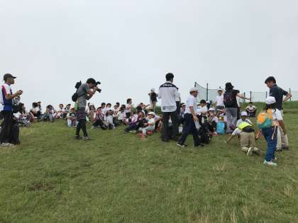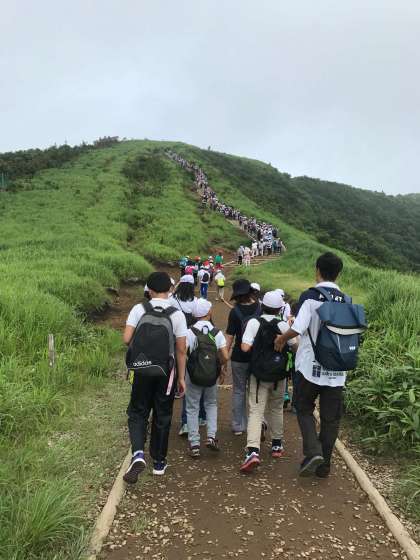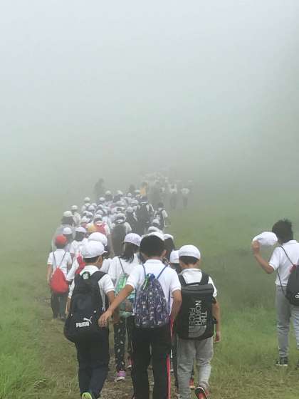 途中、休憩を挟みながらようやく頂上に到着しました。子どもたちは、「しんどい!しんどい!」、と言いながらもなんとか頑張りました。正直、かなりキツイです!