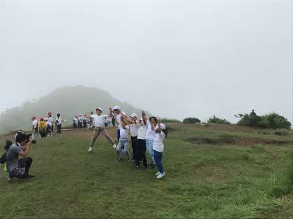 頂上では、活動班ごとに決めのポーズで写真撮影!