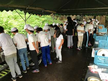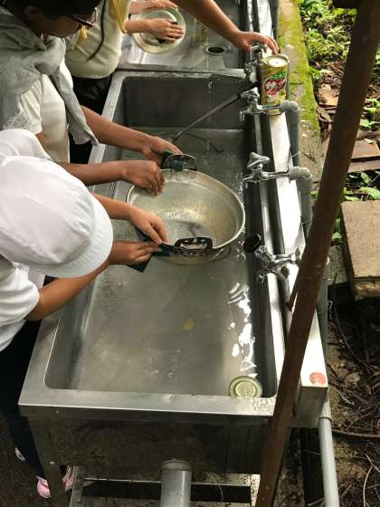 後片付け…スタッフの方からOKがでるまで、鍋や食器を洗いました。とても一生懸命頑張りました。一番最初にOKが出た班は、7班でした。