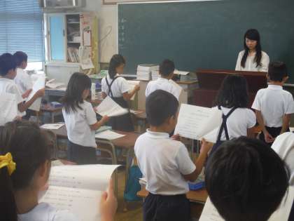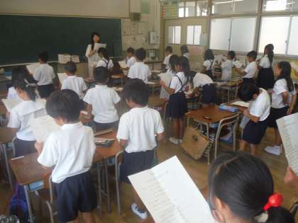 土曜授業で行う平和集会に向けて、歌の練習をしました。