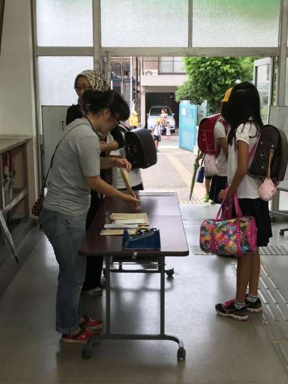 今日と明日、PTAの方が児童ホールにて漢検・英検の受付をしてくださっています。今日は、両方で二十数けんの申込みがありました。