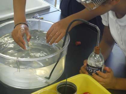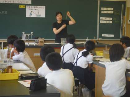 公開授業を行いました。「炭酸水には何が溶けているだろうか」予想→実験→結果→考察という過程を子どもたちに意識させた授業展開でした。