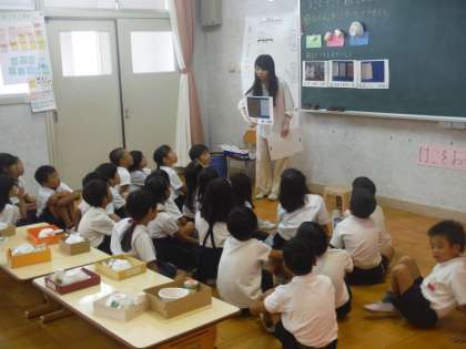 生活科「うごく うごく わたしのおもちゃ」で、公開授業を行いました。本時は、自分のおもちゃをパワーアップしようというめあてで、学習活動を行いました。子どもたちは、なんとかより高くより速くさせようと改善と工夫に精一杯取り組んでいました。
