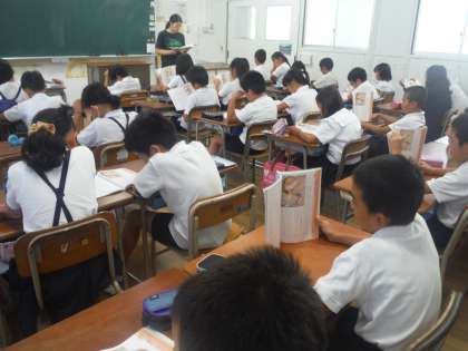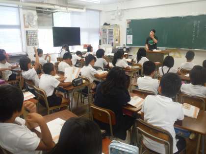 夏休みのできごととして、ある子が文房具店での行いを考えさせる内容でした。